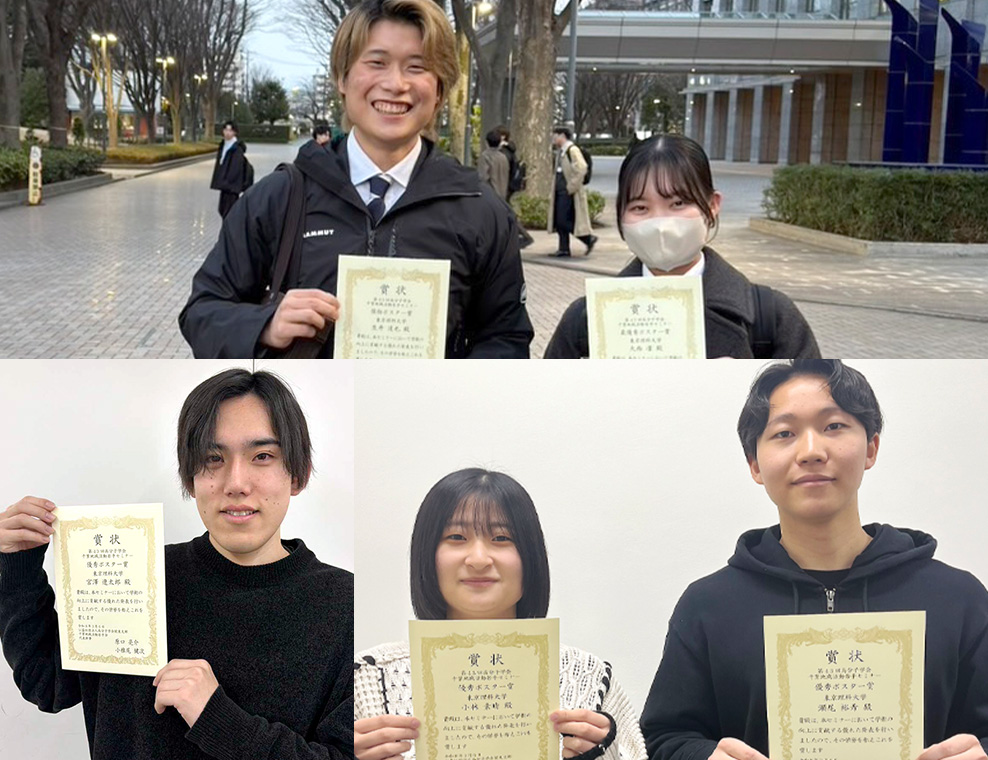 教員、研究室はもちろんのこと、大学院生や学部生などの学生の受賞も数多くあり、皆で切磋琢磨して研究を続けています。